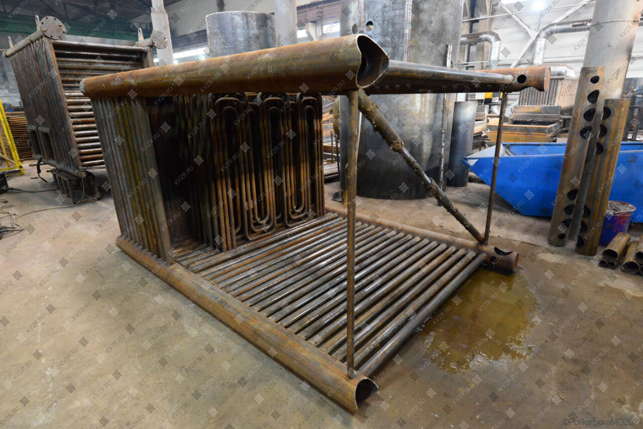 Все водогрейные котлы 2500 кВт нашего производства - стальные, горизонтальные, водотрубные, прямоточные и компактные. Трубная часть котельного блока выполняется из труб различных диаметров, материал труб сталь 10 и 20. Блок снаружи обваривается стальной охлаждаемой полосой, поэтому в наших котлах исключена возможность задымления котельного зала. Снаружи на каркас из профильной трубы и швеллера крепится утеплитель и декоративная обшивка из полимерного листа. В обшивке предусмотрены лючки для очистки поверхностей нагрева.