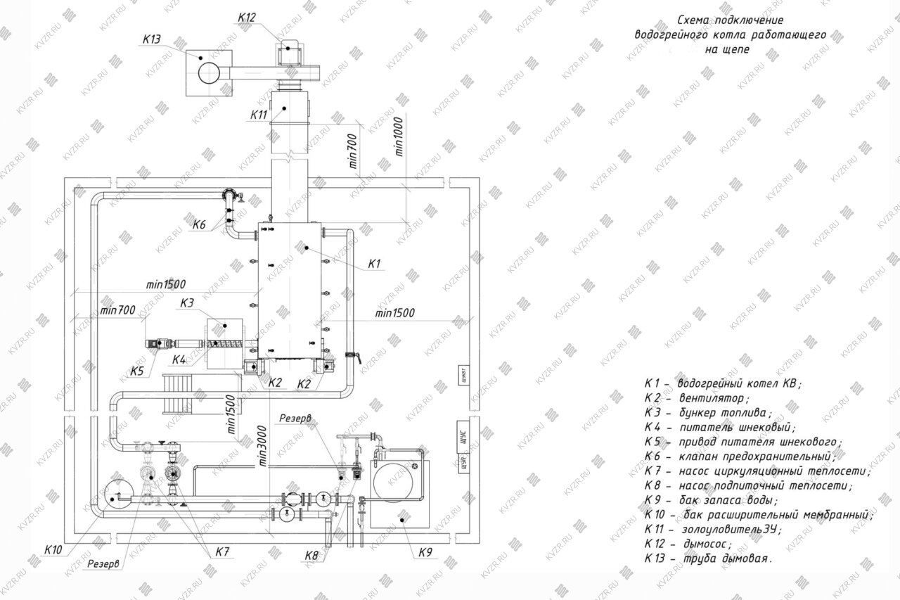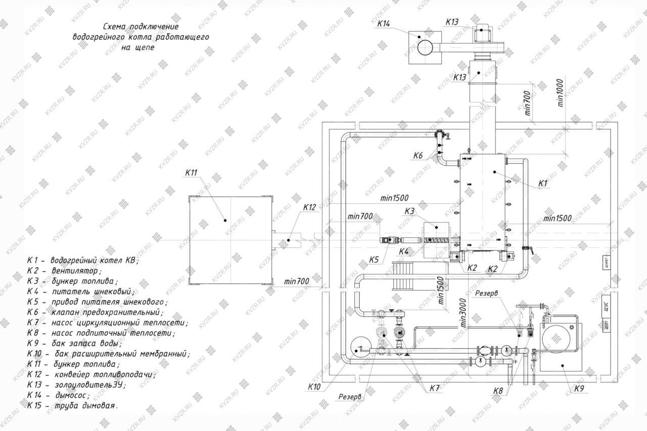 Размеры котельной так же зависят от способа наполнения оперативного бункера. При использовании транспортера или шнека размеры котельной меньше чем при заезде в нее спецтехники для выгрузки топлива. Возможно расположение оперативного бункера котла в отдельном помещении для того чтобы уменьшить размеры основной котельной.